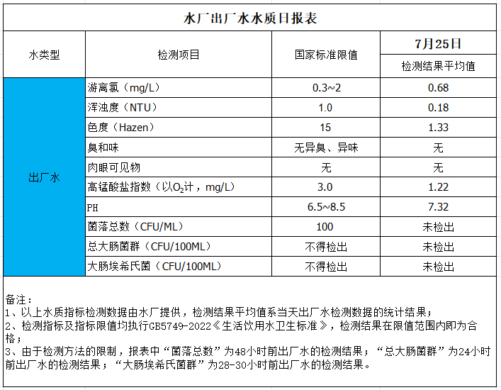 水廠出廠水水質(zhì)日報(bào)表(2025-7-25)