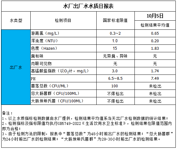 水廠出廠水水質日報表(2025-10-5)