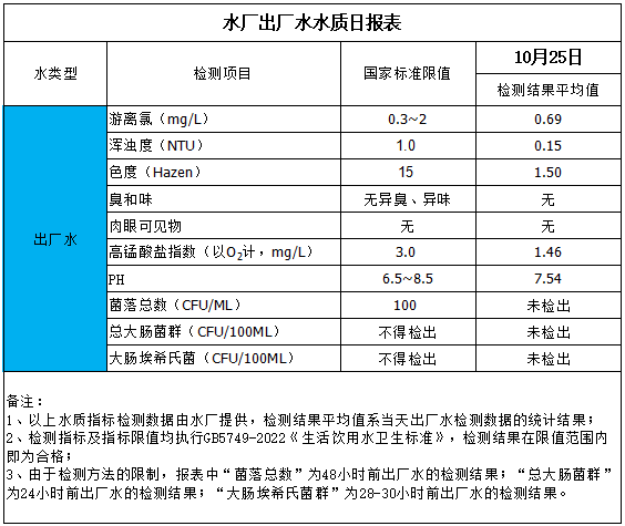 水廠出廠水水質(zhì)日報(bào)表(2025-10-25)