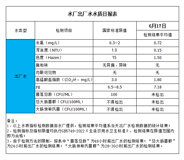 水廠出廠水水質(zhì)日報表(2023-6-17)
