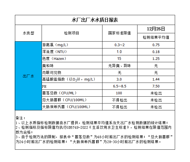 水廠出廠水水質日報表(2023-12-26)