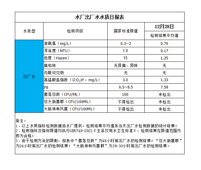 水廠出廠水水質(zhì)日報表(2023-12-28)