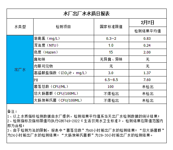 水廠出廠水水質日報表(2024-2-7)