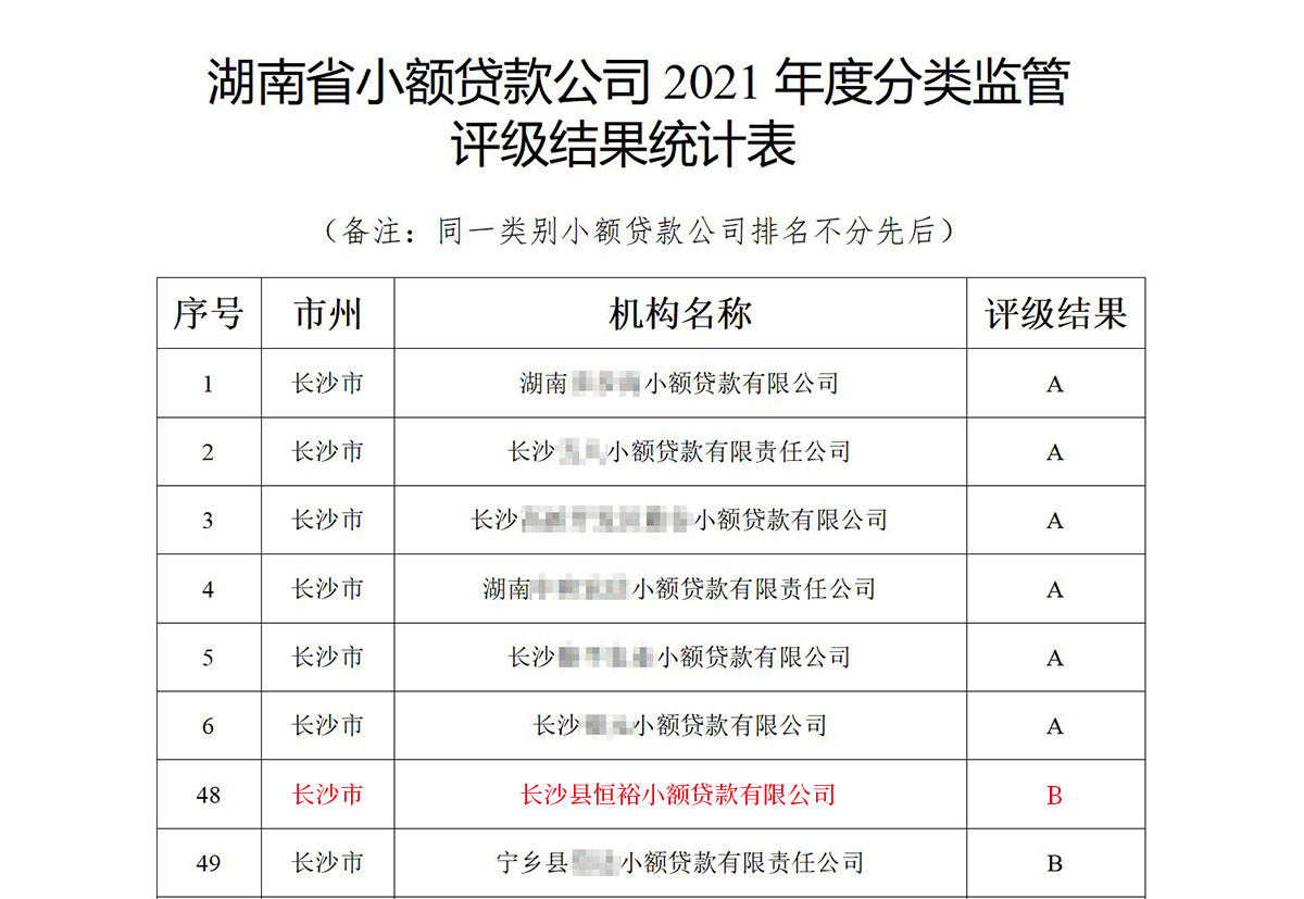 長沙縣恒裕小額貸款有限公司于2012年3月29日設立,經營范圍主要為家電批發零售流動貸款;國家政策允許的農村家電消費貸款;“三農”和中小企業需求的金融業務;為中小企業發展、管理、財務等咨詢業務及其他經批準的業務。多年來,一直